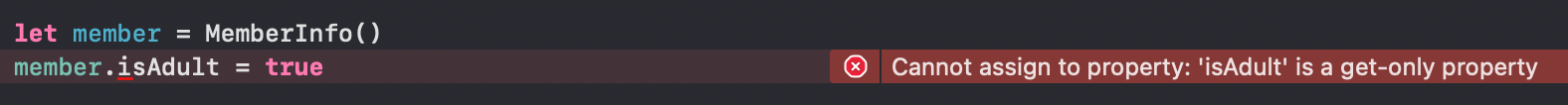 // member.isAdult = true => isAdult에 값을 세팅할 수 없음