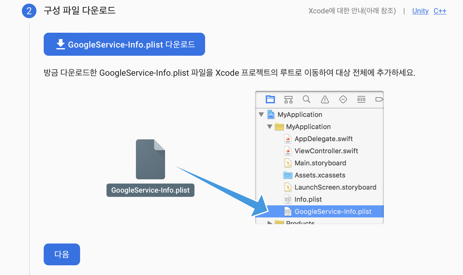 AppDelegate 파일을 열어서 잘 복사 붙여넣기 해준다.